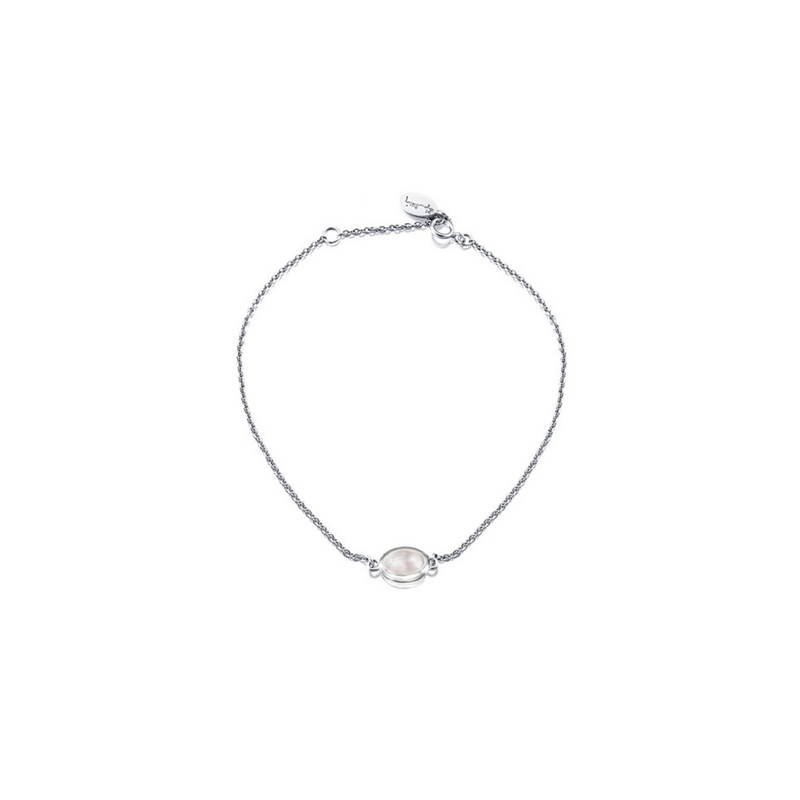 Armband i återvunnet sterlingsilver med böna med rosenkvarts.