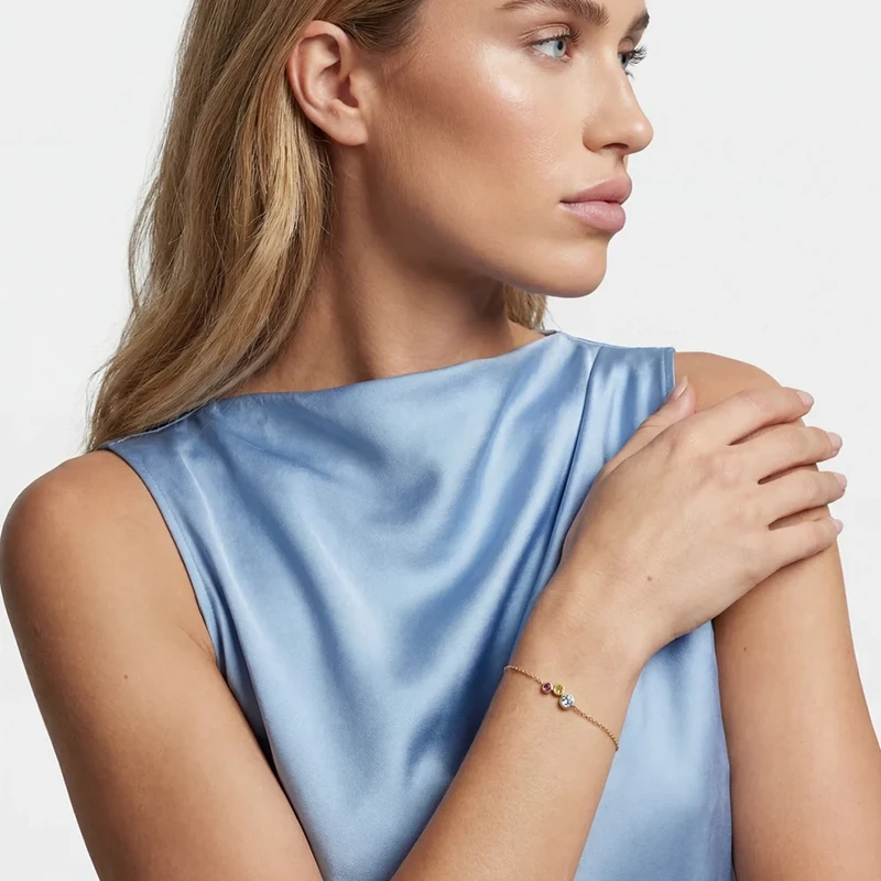 Armband i 18 karat guldpläterat 925 Sterling Silver med polerad yta och handfattade, fasettslipade multifärgade zirkoner.