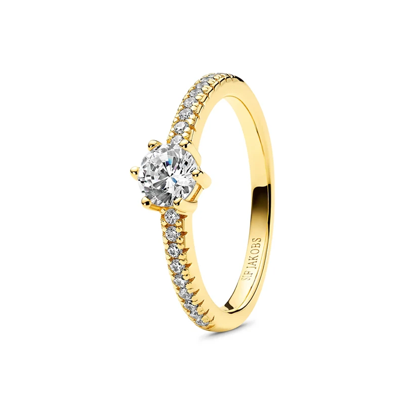 Ring av 18 karat guldpläterad 925 Sterling Silver, polerad yta och vita handplacerade zirkoner