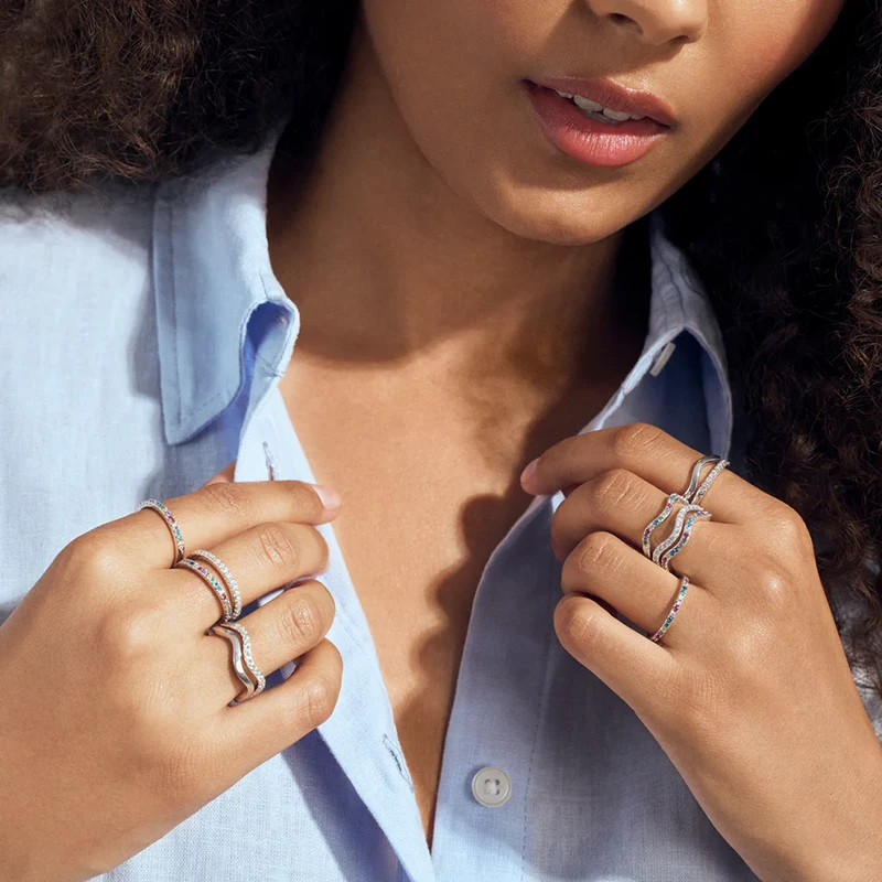 Ring i rodiumpläterad 925 Sterling Silver med polerad yta och handplacerade fasetterad vita zirkoner